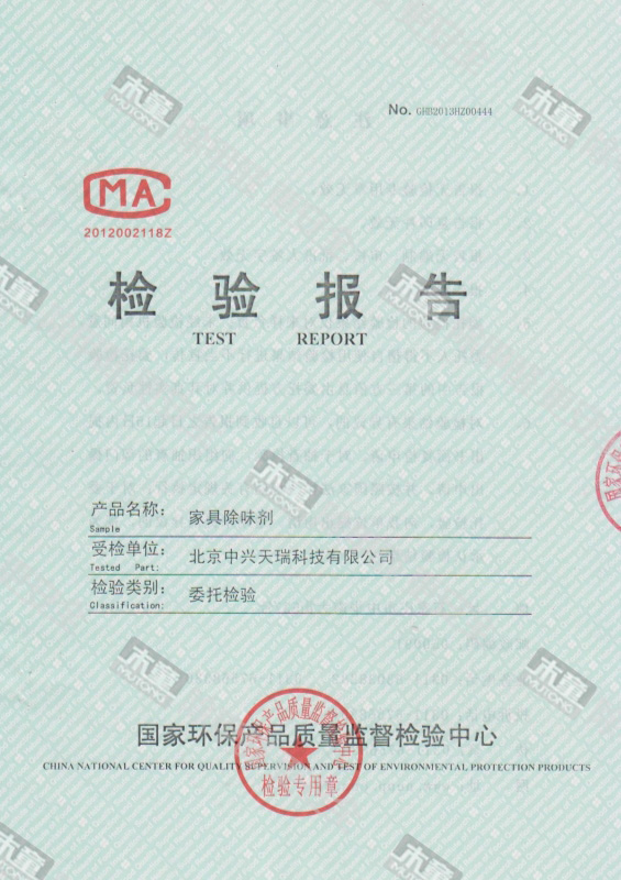 木童家具除味劑效果檢驗報告