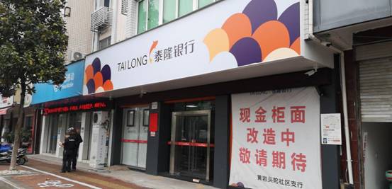 客 戶:泰隆銀行頭陀社區支行地 址:臺州市黃巖區西沅路與頭陀街交匯處東南施工面積:500m2施工時間:2018年10月工程背景: